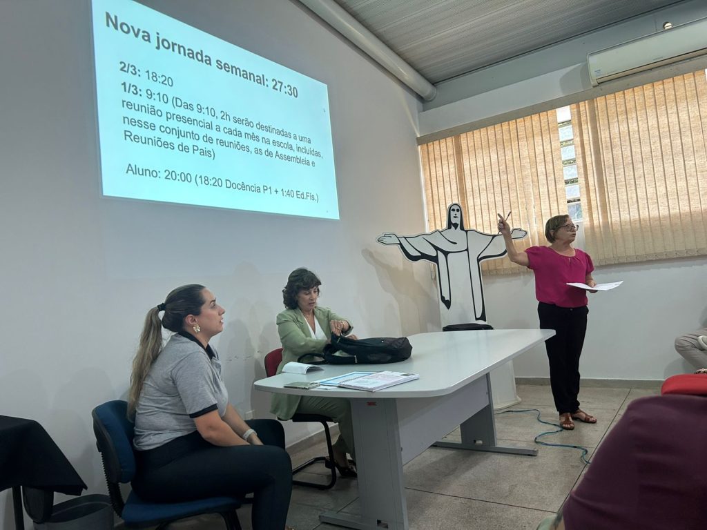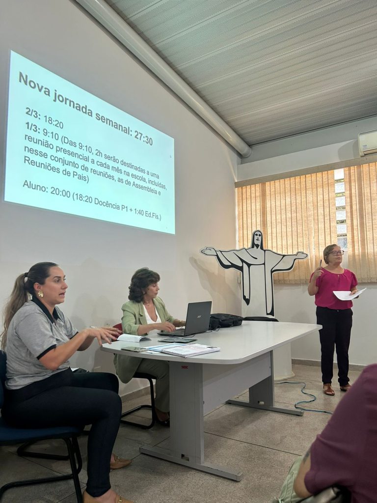 Durante a reunião, foi apresentada proposta de mudança da jornada de 24 horas semanais dos professores de Educação Básica I (PEB I) para 27h30 semanais, com o objetivo de suprimir os Adicionais de Extensão de Jornada e de Exigência Curricular, refletindo diretamente na adequação ao Piso Salarial Nacional.
